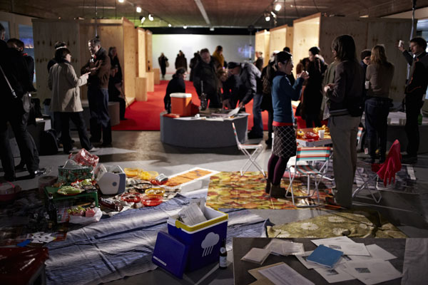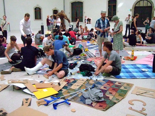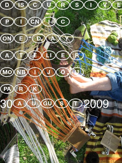Discursive Picnic_ Aufwachen, 5th April 2009, 3-6pm, Haus am Waldsee. You/we are invited to a Discursive Picnic in the exhibition "Aufwachen", as a guest, as a host. On the platform, on the blanket, on the floor. Bring, give, take, share ideas, food, talk.