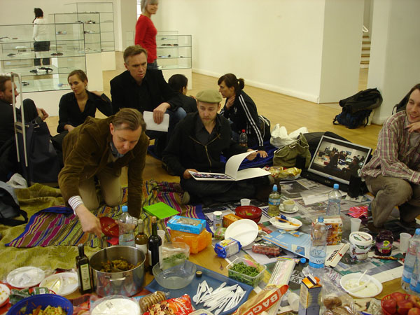 Discursive Picnic_on the margins of the 50-years-documenta conference, 30. Oktober 2005 Publikation: documenta zwischen Inszenierung und Kritik - 50 Jahre documenta, (Hg.) von Stengel, Karin / Radeck, Heike / Scharf, Friedhelm, Hofgeismar 2007 http://www.buchhandel.de/detailansicht.aspx?isbn=978-3-89281-252-4 |