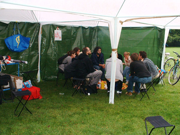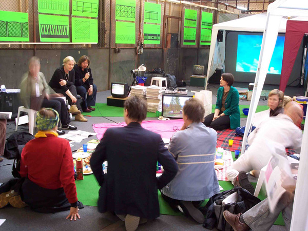 Discursive Picnic_HOCHsitz(en) on the roadside The Discursive Picnic was developed by the interdisciplinary UNWETTER collective for documenta11.