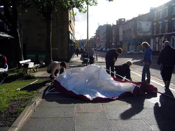 | UNWETTER Lecture_Mobility, Mobility Art in the Urban Environment, Urban Intervention workshop - MOBILITY in Liverpool, September 2005 coordinated by Cecilia Anderson, WERK http://www.ruc.com/werk Workshop, 2 3 September, Liverpool, England. The workshop looked for possible strategies for working in a constantly changing urban environment. |
